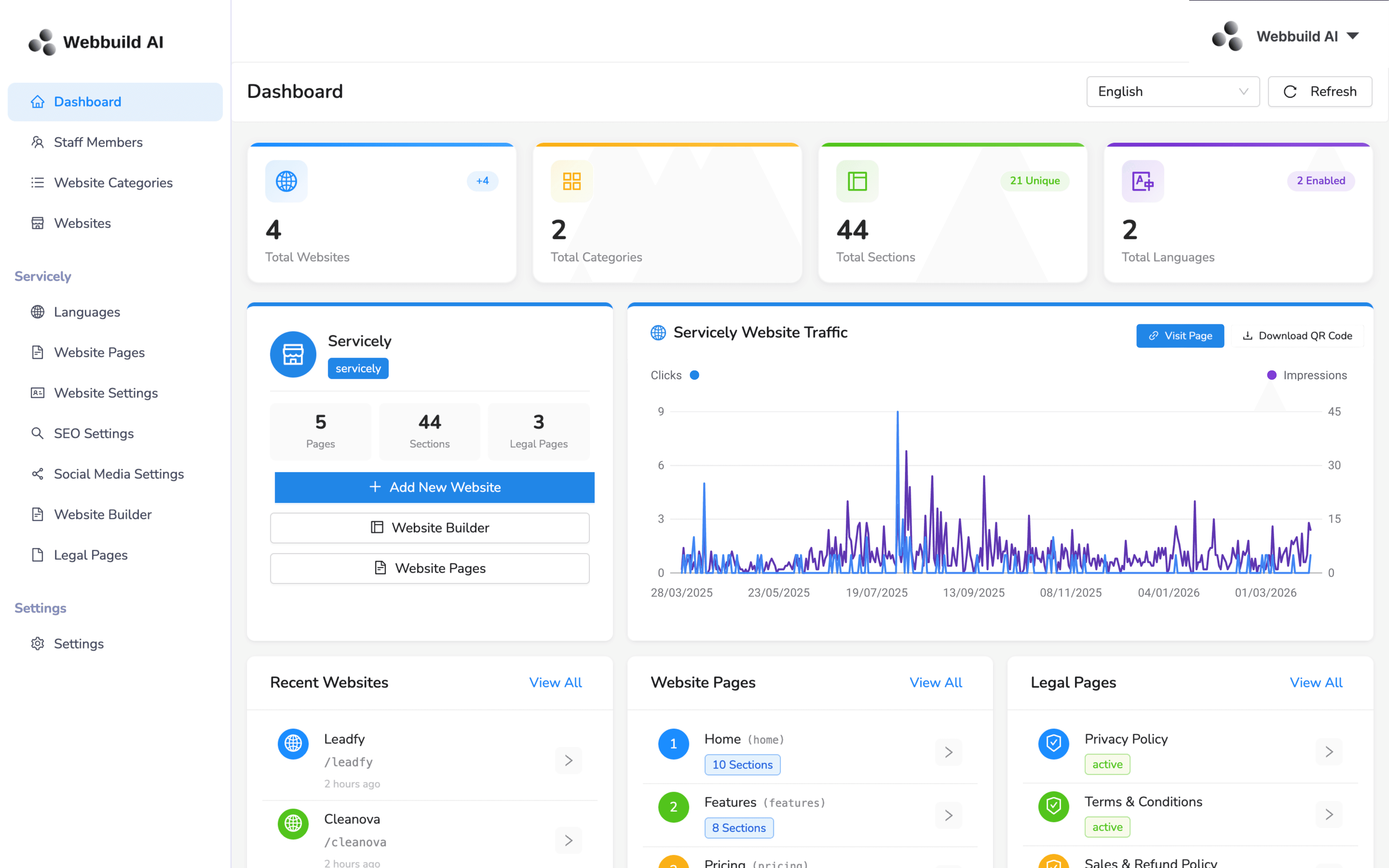 Configure meta titles, descriptions, keywords, and Open Graph tags for every page. Boost your website’s ranking with built-in SEO tools.